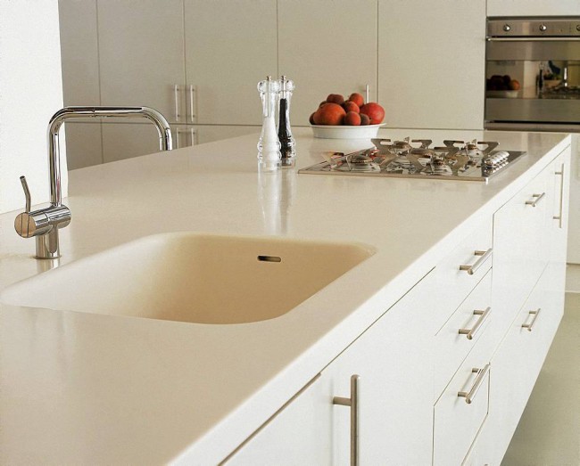 Подверженность царапинам. Акриловый камень легко царапается, поэтому с ним нужно обходиться бережно и ни в коем случае не резать на нём без использования разделочных досок или подложек.