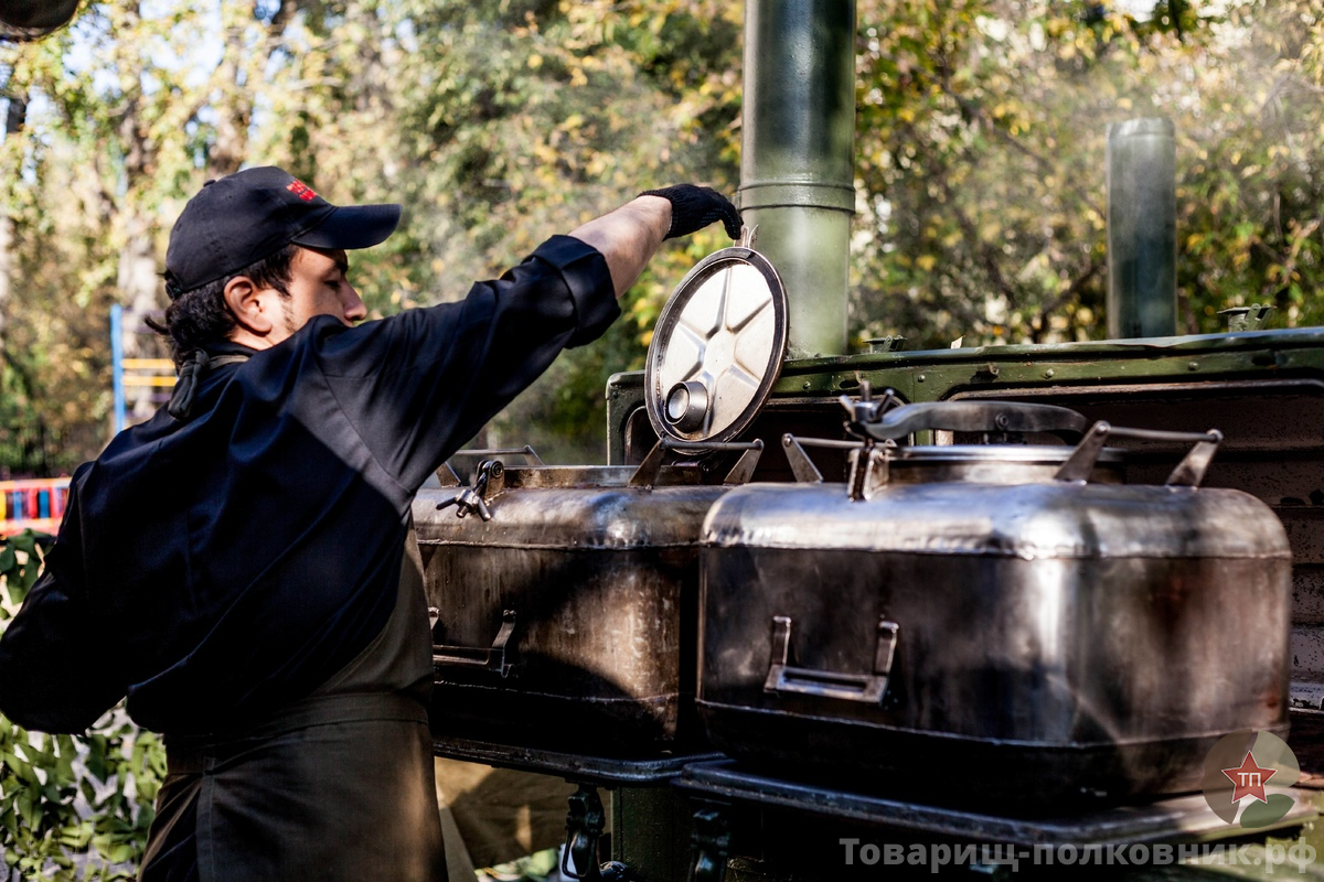 Опытные повара выездной полевой кухни придерживаются строгих санитарно-гигиенических правил, а также используют исключительно чистую посуду и свежие ингредиенты, что гарантирует безопасность всех приготовленных блюд. А само устройство прицепа для приготовления пищи рассчитано таким образом, чтобы долго хранить тепло, придавая пище исключительный вкус и аромат. Для подачи супа или каши из котла используется черпак – большой половник, прямо как в армии. Это создает ощущение присутствия в самом настоящем военном лагере, оставляя незабываемые воспоминания у детей и их родителей.