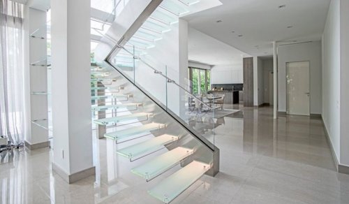 Как устроены стеклянные лестницы в частном доме?