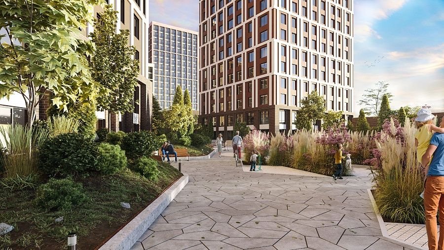 Здесь же она везде: от шумопоглощающих фасадов до тихих дворов, где дети играют, не мешая соседям.
