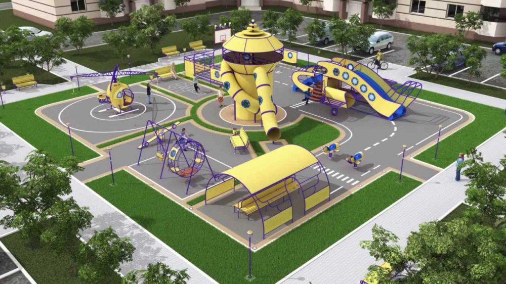 Все они будут безопасными и комфортными для детей, оборудованы ударопоглощающим покрытием, защитой от травм, с видеонаблюдением, пешеходными дорожками, лавочками и урнами для мусора. Игровые элементы на площадках предназначены как для совсем маленьких детей, так и для подростков и включают игровые городки с горками, качели, карусели.