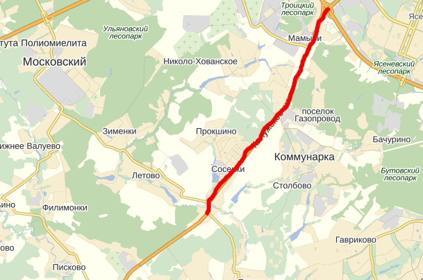 По проекту планировки выделяются 2 участка магистрали. Первый, в 3 км, пройдет от улицы Адмирала Корнилова до автодороги «Солнцево-Бутово-Видное». Там проведут реконструкцию существующей проезжей части, организуют заезды на объектов, расположенные вдоль трассы, поставят светофоры, создадут заездные карманы для наземного пассажирского транспорта и павильоны ожидания.