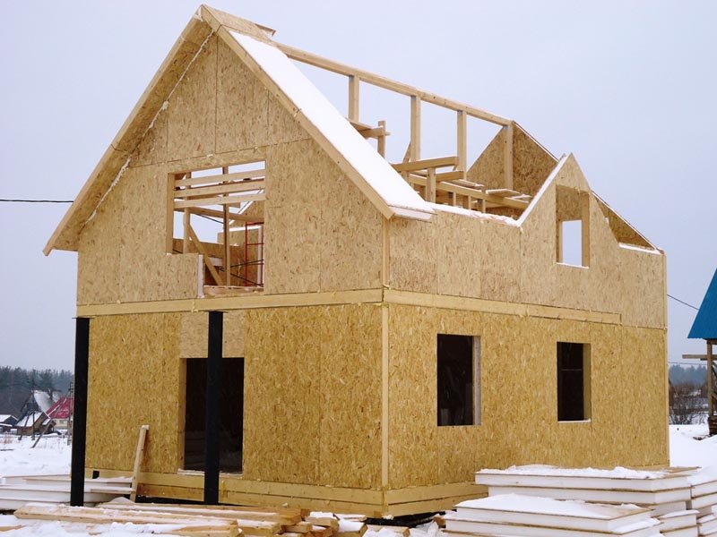 Учитывая подобный подход, неудивительно, что строящиеся здания именуют каркасными. Однако сразу же отметим, что в такой конструкции СИП-панели выступают не только в качестве раскосов.