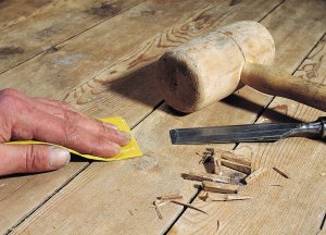 Главная причина в том, что «ходят» лаги, а также половые доски (или паркетины щитового паркета) относительно друг друга. Лаги нужно притянуть к стяжке (или плите перекрытия) с помощью дюбель-гвоздей диаметром 10 мм соответствующей длины, а доски связать между собой саморезами, вкрученными под углом 45...50 градусов. Если нет возможности притянуть лаги к полу, протянуть пол лишь с помощью саморезов, что также может дать значительный эффект. После протяжки на пол придется положить какое-нибудь покрытие.