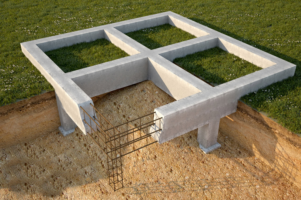 В данной разновидности ленточного фундамента, полосы дополняются железобетонной плитой под всей площадью здания, что увеличивает его стабильность и распределение нагрузок.