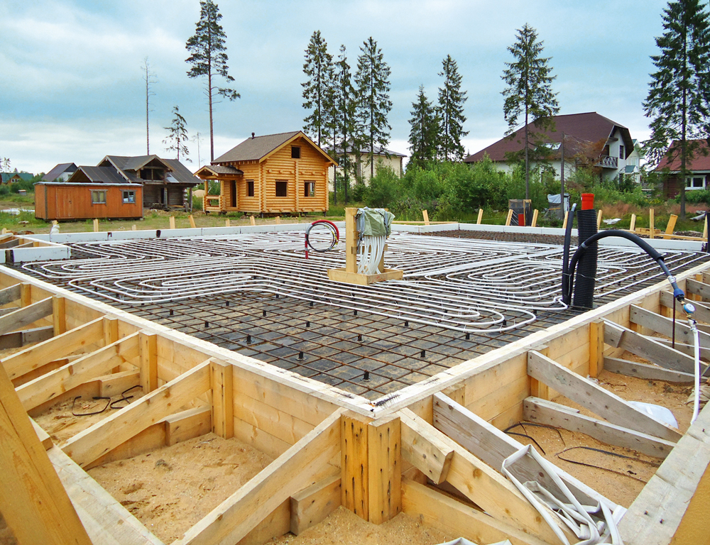 • Классический плитный фундамент. Его необходимо располагать ниже уровня промерзания грунта. Благодаря этому вы легко дополните сооружение подвалом или же цокольным этажом, реализовав любой проект.
